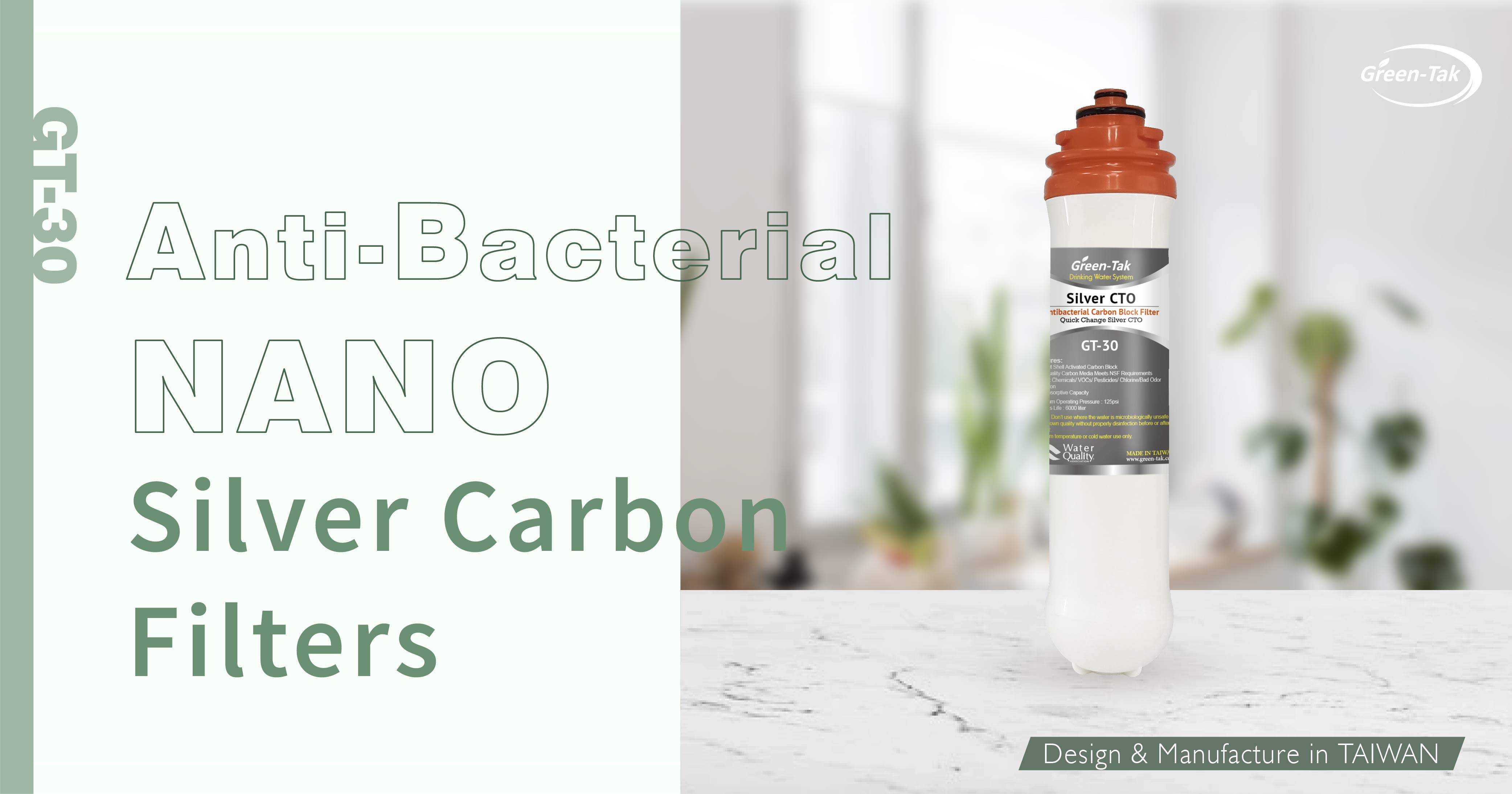 Los filtros antibacterianos de carbono nanoplata están compuestos por medio de carbón activado de cáscara de coco de alta calidad y plata de tamaño nanométrico que es buena para reducir el cloro, el olor y el mal sabor del agua. El filtro de bloque de carbón activado Nano Silver (CTO) se ha convertido en una de las soluciones de filtro de agua más populares en aplicaciones de punto de uso (POU) y punto de entrada (POE).