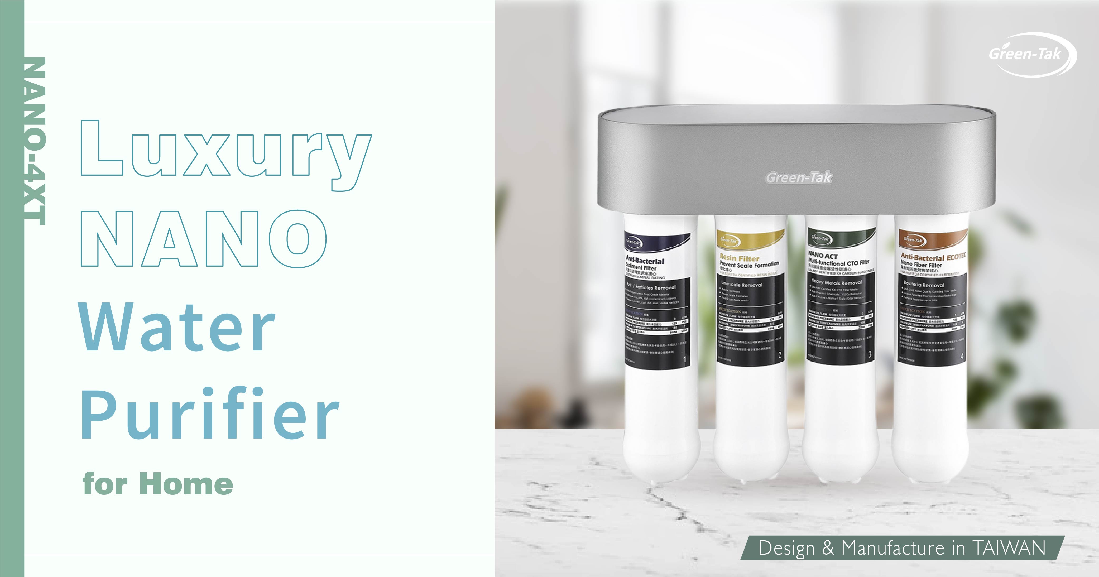 El purificador de agua de lujo Nano para el hogar está hecho de una película antibacteriana NANO-ACT de múltiples capas y se combina con un medio de carbón activado. Mediante el uso de la tecnología de purificación de agua nano x-plus, la película nano elimina bacterias, gérmenes y metales pesados hasta en un 99% y el medio de carbono proporciona una alta absorción de cloro, pesticidas, productos químicos orgánicos y malos olores del agua. El nano purificador de agua de cambio rápido es la solución de filtración de agua perfecta para agua potable en el punto de uso (POU) para aplicaciones residenciales.
